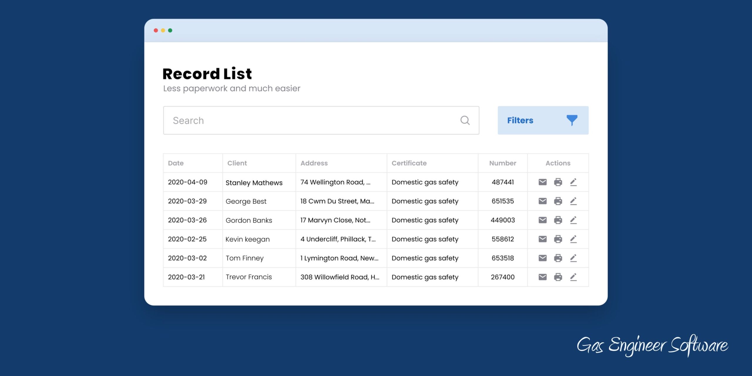 Previous customers stand to gain even more from organised records. With quick access to details of a past job, it’s much easier to stay abreast of previously completed work. This is especially helpful if you employ several engineers, as some may be working for old customers for the first time. Also, whenever a customer needs a new copy of a certificate, it’s all there for you to quickly find and send without any hassle.